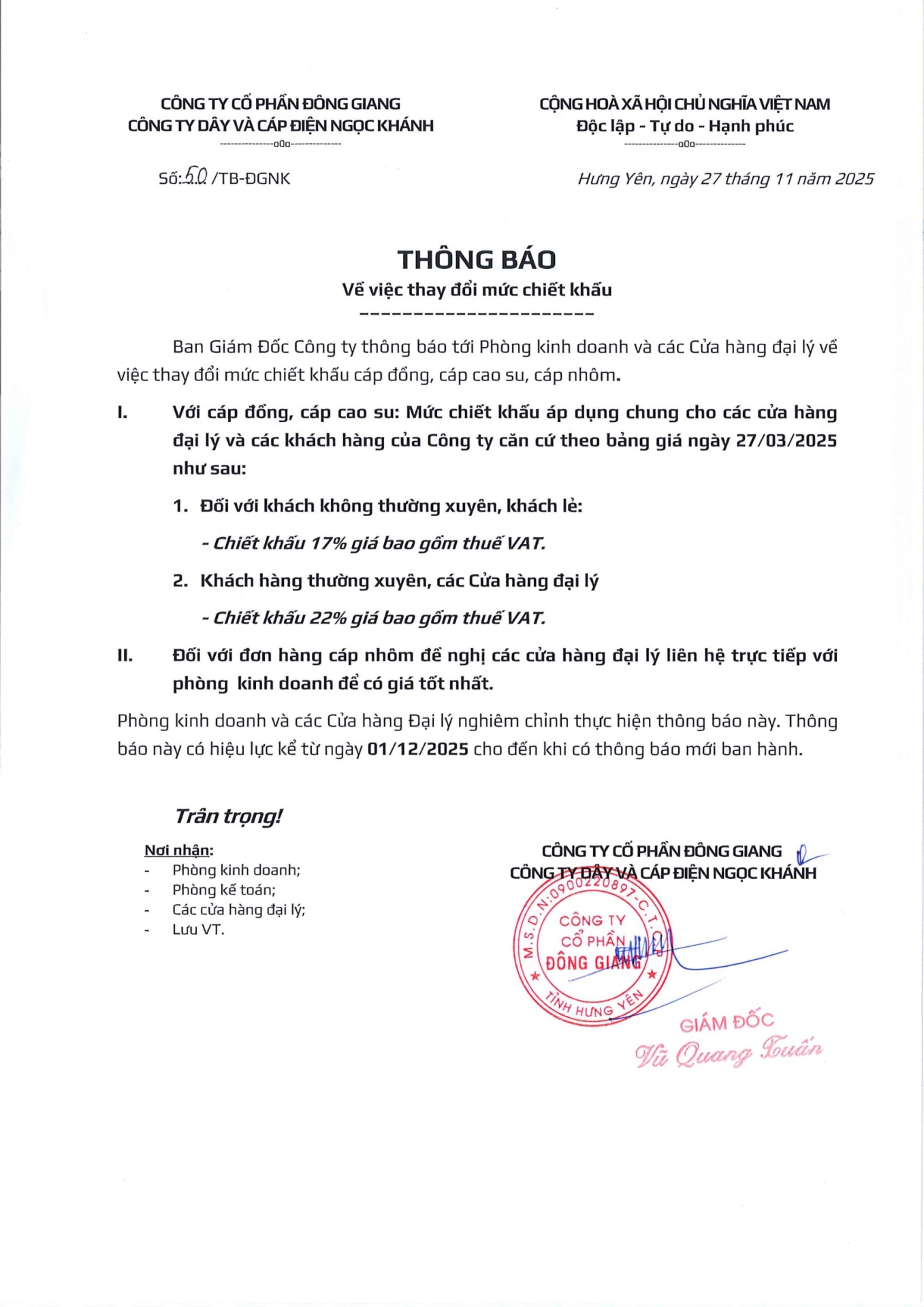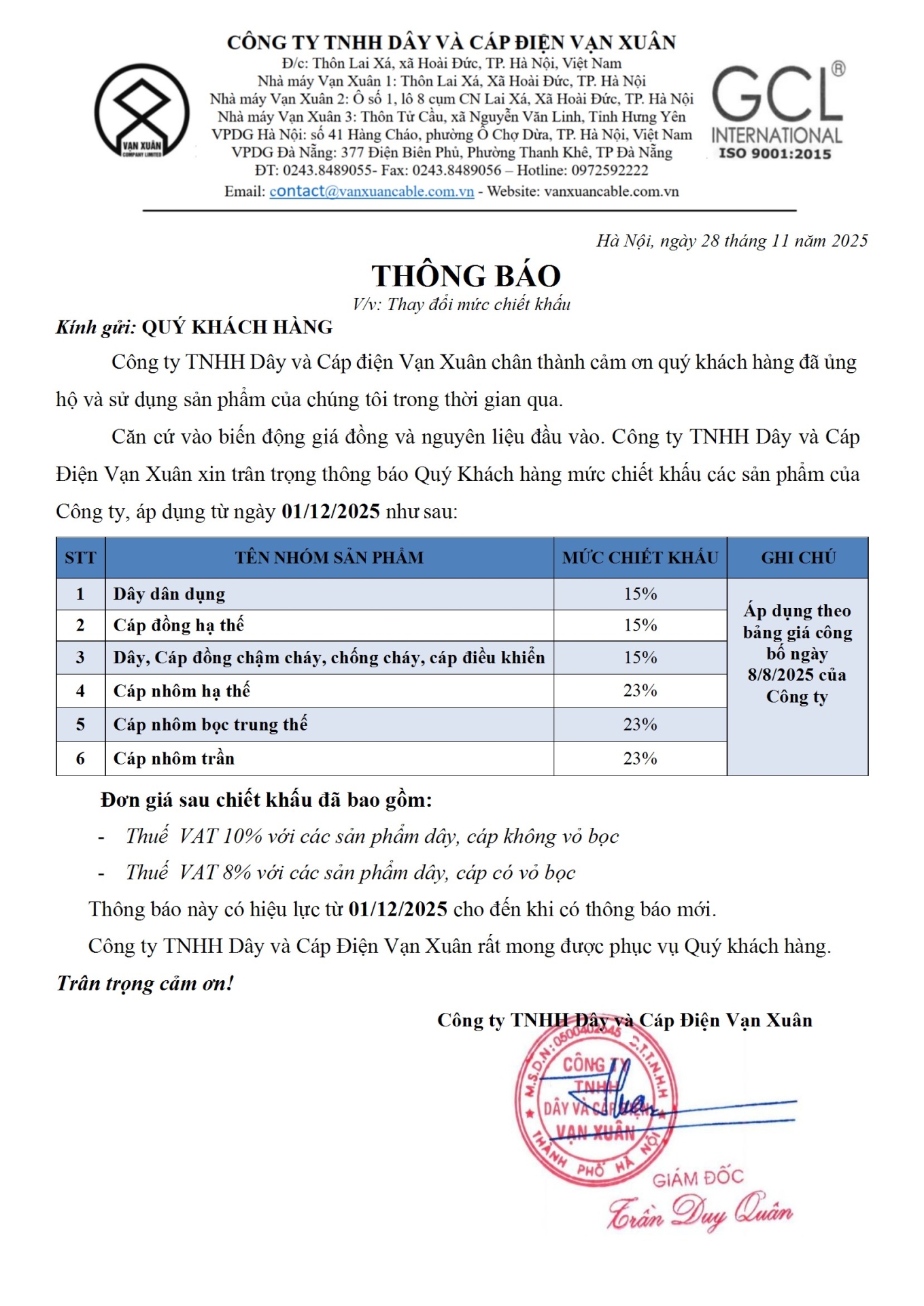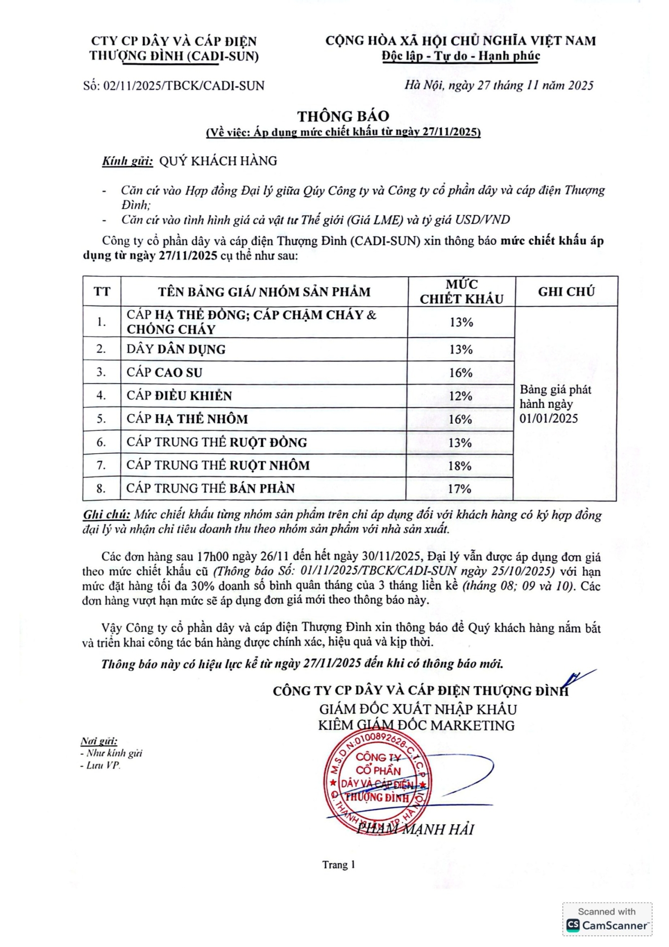 Cadisun, Goldcup, Vạn Xuân tăng giá từ 1/12/202515:22 - 29/11/2025Cadisun, Goldcup, Vạn Xuân điều chỉnh mức chiết khấu tăng giá bán từ ngày 1/12/2025 Chia sẻ: